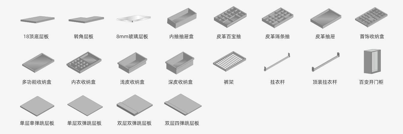 多種模塊組件可選,日??梢园葱柙鰷p、調(diào)節(jié)、替換,輕松適應收納與陳列需求的變化。